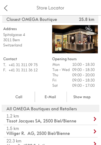 When you are ready to visit an OMEGA Boutique, the App will help you find the one nearest you or any of our other locations around the world.