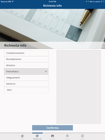 Lapplicazione permette di visualizzare il catalogo aggiornato e richiedere informazioni e preventivi.