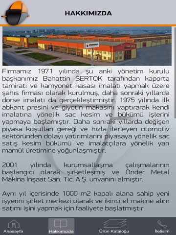 Firmamız 1971 yılında şu anki yönetim kurulu başkanımız Bahattin SERTOK tarafından kaporta tamiratı ve kamyonet kasası imalatı yapmak üzere şahıs firması olarak kurulmuş, daha sonraki yıllarda dorse imalatı da gerçekleştirmiştir. 1975 yılında ilk abkant presini ve giyotin makasını yaptırarak kendi imalatına yönelik sac kesim ve bükümü işlerini yapmaya başlamıştır. Daha sonraki yıllarda değişen piyasa koşulları gereği ve hızla ilerleyen otomotiv sektöründen dolayı yatırımlarını piyasaya yönelik sac satış kesim bükümü ve imalatçılara yönelik yarı mamül üretimine yoğunlaşmıştır.