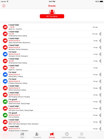 You can send alerts with your location in one click to all your close contacts.