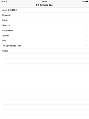 The official reference guide for One Hit Kill, a new card game of ridiculously overpowered weapons. With this app you can learn how to play the game, see the cards, and take the One Hit Kill experience with you whereever you go.
