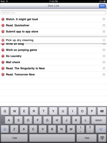 Quickly jot down entries. No need to tap, just type, press "Return" and enter your next item.
