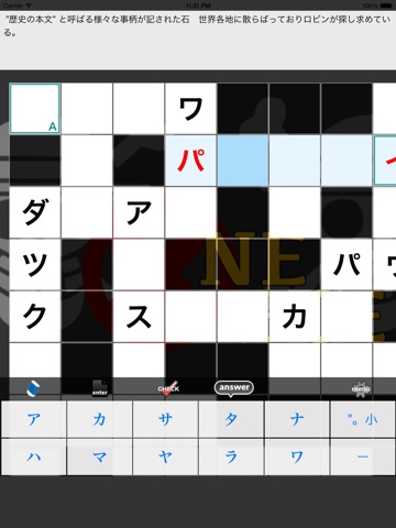 キーボードには、答え合わせの画面を出現させる "answer" や 入力した文字の正否をチェックする "CHECK" をご用意しました。問題を解く際に活用ください。