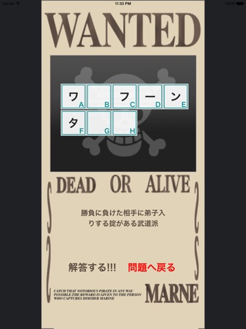 大人気コミック『ONE PIECE』に登場した キャラクター、アイテム、名言、設定などをクロスワードにした、ワンピースファンにはたまらないアプリです!!