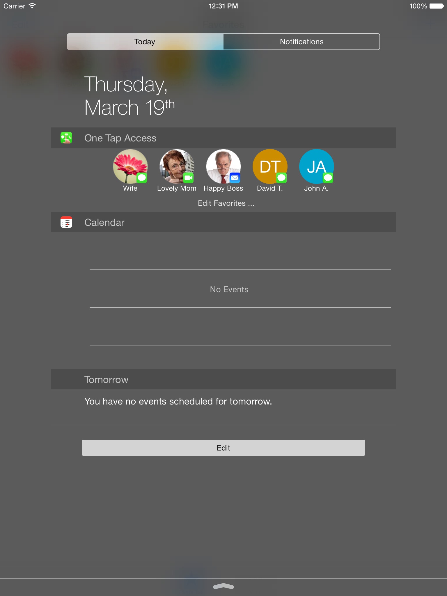 One Tap Access widget allows you to quickly reach your favorite contacts using a single tap from Todays Widget on Notification Center.