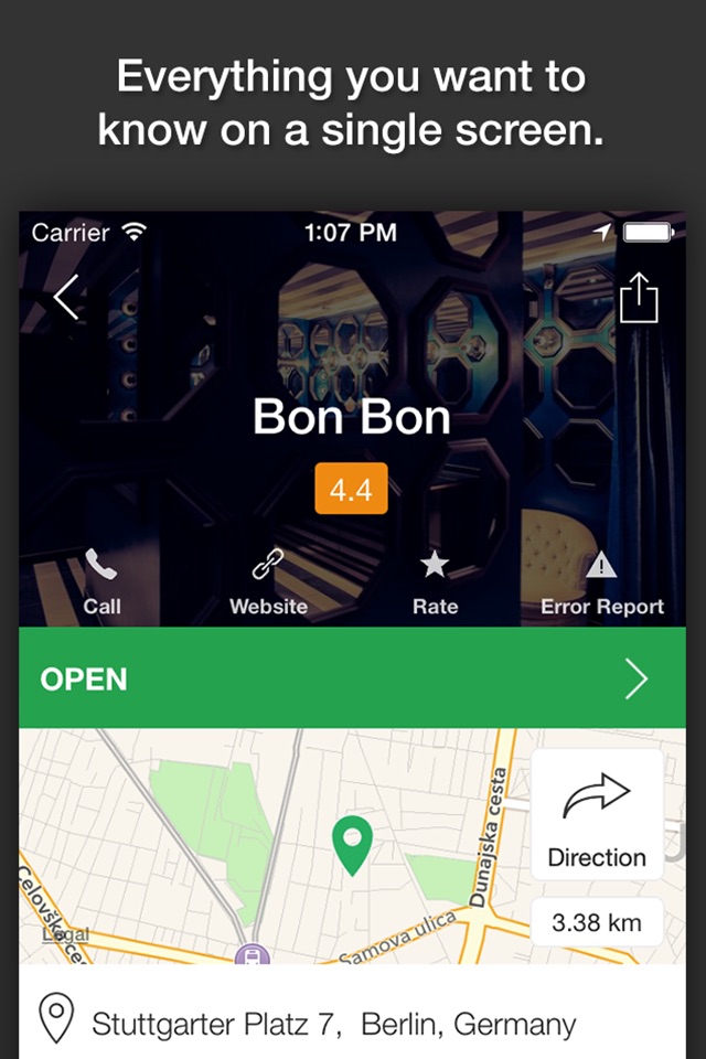 It provides information about location, description, user comments, pictures and more. You can also rate & post comments and add favorite place in database if missing.