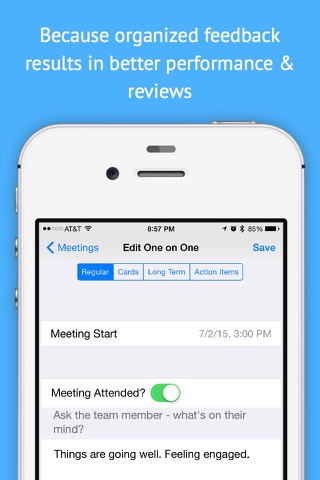 It is a simple app. It is something you will use every week as a manager. As you take notes in advance of a one on one meeting with a team member, noting the good work they are doing or the areas of improvement for them, this app will be your companion.