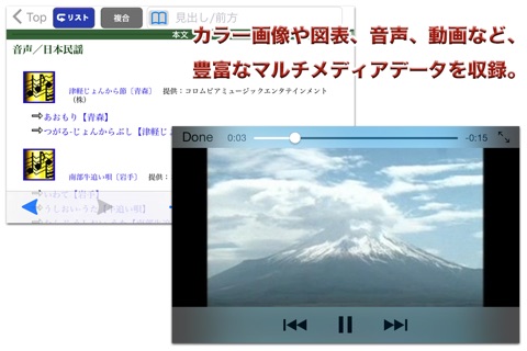 言わずもがな ですが UIがいまいちなのが、残念です。(DVD版そのまま?) 縮小はダブルタップで出来るのに、拡大が出来ない 何かを検索した後で、トップメニューに戻れないし マルチメディアデータ一覧の や ゆ よ がずれているし・・・・ iPhone用にUIは、一工夫ほしいですね。