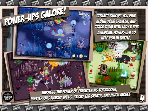Onion Force is a hybrid Tower Defense/Action Adventure game with 30 levels of butt-puckering mayhem! Use cunning and strategy to strengthen your team, chosen from a diverse cast of characters, and hang on to your seat as you try to save the last king from his impending doom!