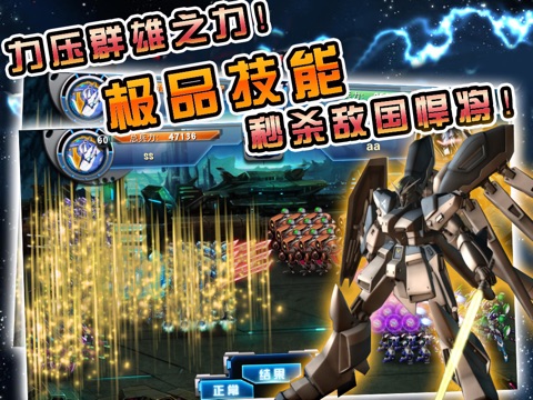 三国时代全部武将悉数登场,多种武将属性,多样武将技能,让你在战场上一举成功。想要体验秒杀敌国的快感,训练机甲战将,提高战将技,升级战将等级,更有兵将转职升级和战将品阶升级,一系列武将养成系统为您征战沙场秒杀敌国加油助力,更有极品紫武将、橙武将为您出谋征战,一举拿下敌国!
