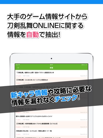 | 2 | 攻略ニュースまとめ for 刀剣乱舞-ONLINE- Pocket (とうらぶポケット) | 16 |