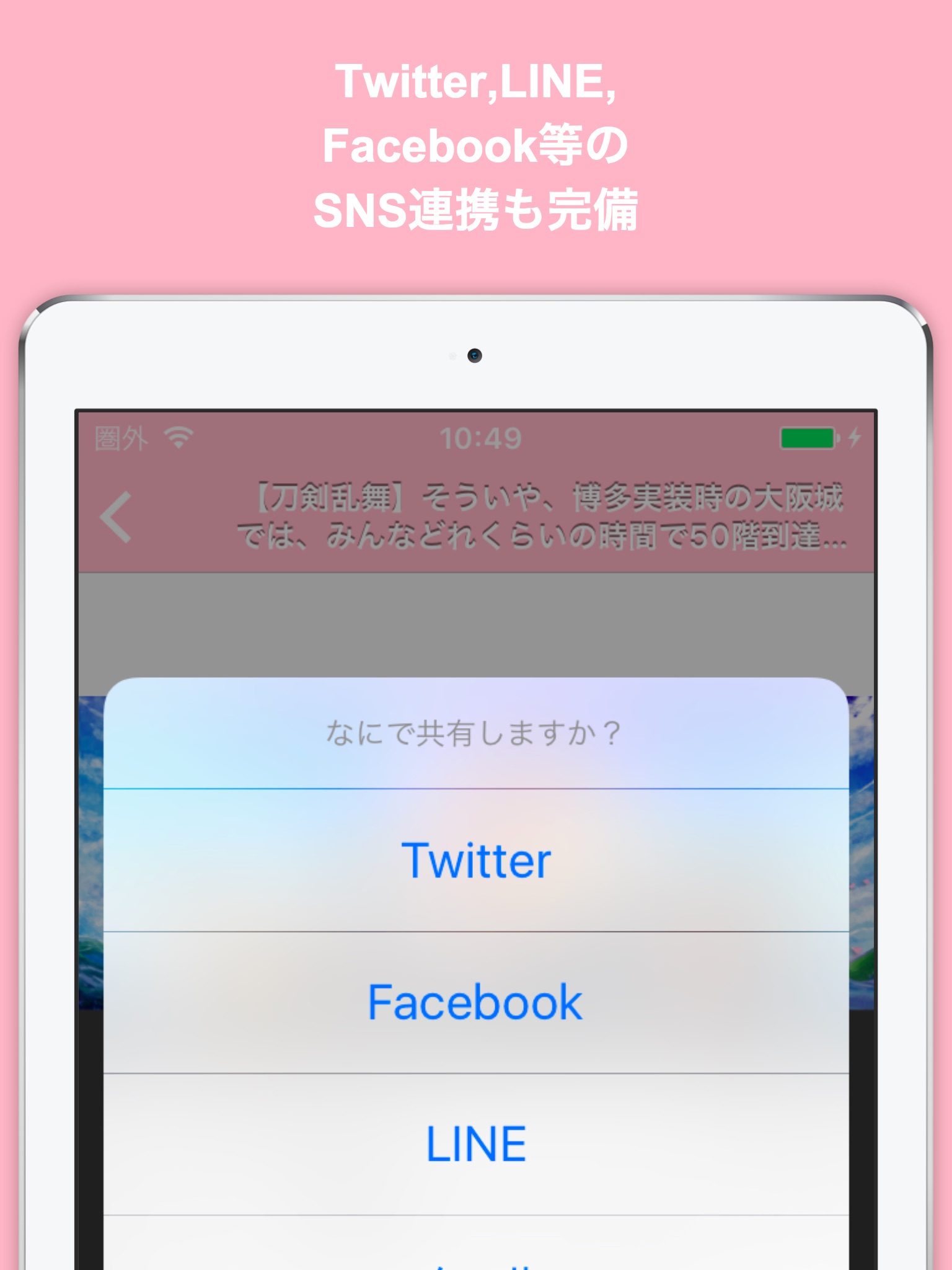 Twitter, Facebook, LINE等のソーシャル連携も万全!どんどんシェアしよう!