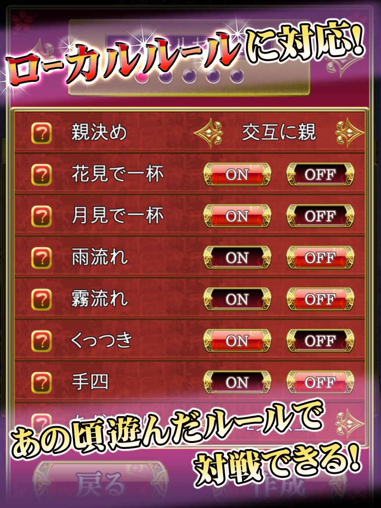 ・花札のルールの中でのもっともスタンダードである「こいこい」を収録しています。