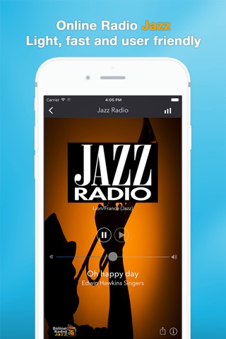 Online Radio Jazz is a gorgeous iOS application for live broadcasting best Jazz radio all over the world.