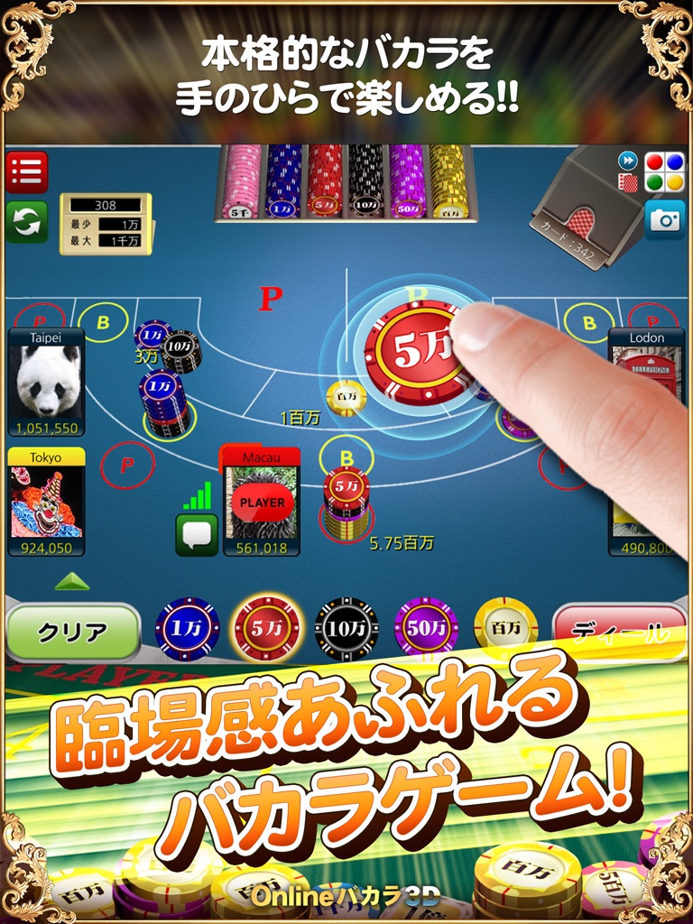 いつでも、どこでもオンライン対戦可能な「Onlineバカラ3D」で世界に挑戦!