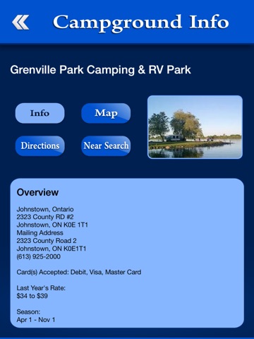 Campground Info # Amenities # Address # Description # Map # Directions # Pictures # Near Search # Route Map