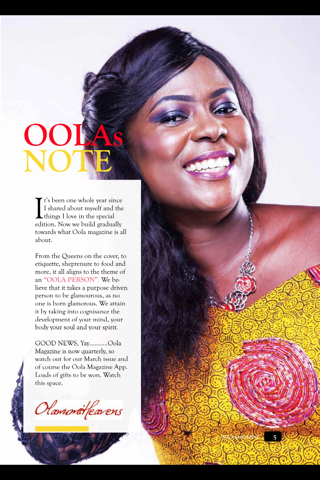 From the celebs gracing the cover, deep into the lifestyles of the big dogs more, it all aligns to the theme of an “Oola Personerlity”. We believe that it takes a purpose driven person to be glamourous, as no one is born glamorous. We attain it by taking into cognisance the development of your mind, body soul and spirit.