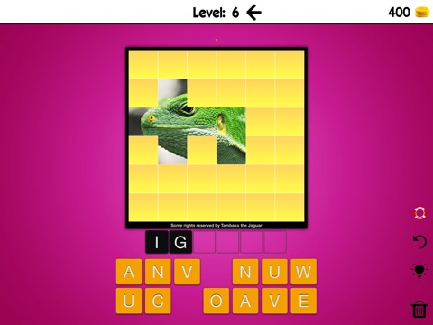 Tap the tiles and reveal parts of the picture. Can you guess the secret word?