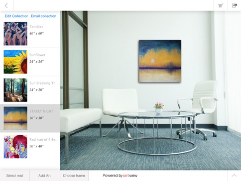 View multiple artworks on the wall of your home or on designer walls from our "wall gallery"