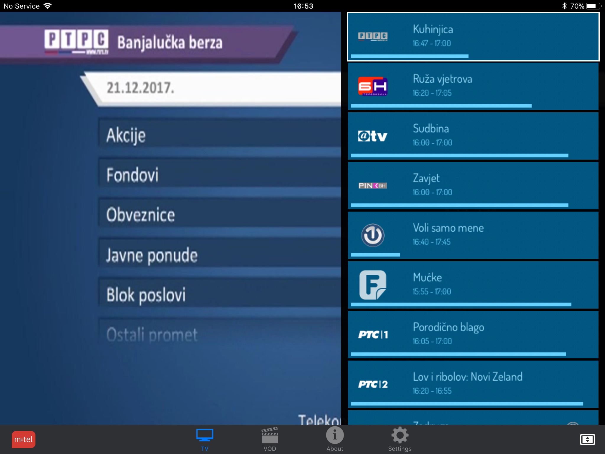 Televizija za ponijeti! Ponesi Open To Go sa sobom gdje god to poželiš i prati izbor najboljih TV programa na mobilnom telefonu ili tabletu. Na raspolaganju su i videoteke sa hiljadama časova najboljih filmskih, serijskih i dokumentarnih sadržaja iz svjetske produkcije. Saznaj više na http://open.mtel.ba ili pozovi besplatni info telefon 0800 50 000.