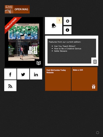 Keep up with your network wherever you are. Read OPEN magazine on your iPad! OPEN is the magazine of The University of Texas at Austin McCombs School of Business. It illuminates the stories and people of the McCombs community.