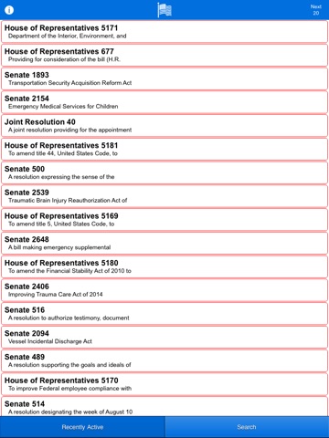Easy access to the most recently active bills in Congress, as well as the ability to search for bills by a topic that interests you.