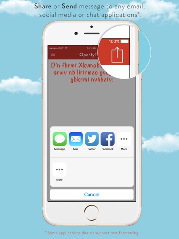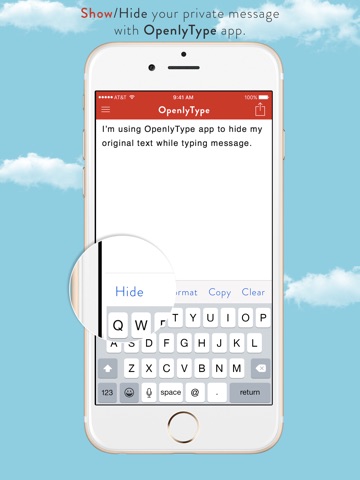 OpenlyType App allows users to hide messages while typing by using character shuffling technology. This app will allow you to maintain your privacy while sending messages in public view. OpenlyType you can keep your message secret. When you type a message, you can choose to hide the original message on your screen so that others around you cannot read it, but when you send it to another device, they will be able to read the original message. This app is compatible with iOS devices, regardless of if the end user has the OpenlyType app.