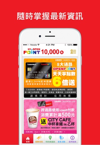 1.累積-查詢最新點數優惠情報、累點通路及活動。