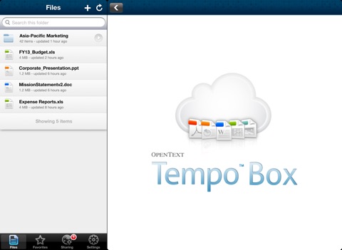 OpenText Tempo Box provides an innovative and secure way of easily synchronizing your important business files across multiple computers and mobile devices. Tempo Box also allows you to easily share information with other people – your colleagues, business partners, even customers. Best of all, the files and folders are safely managed within a secure content management system that lets you track, audit and manage your files and folders. Tempo Box lets you manage and control your information responsibly and on-premise or in the cloud while letting your users easily access and share information across devices.