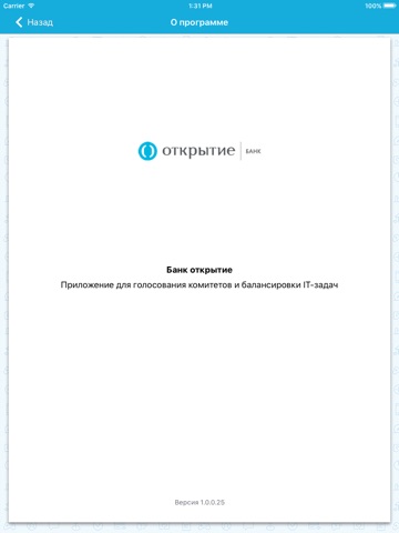 Приложение позволяет участвовать в голосованиях комитетов Банка "Открытие". Вы сможете ознакомиться с вопросами комитета, скачать и просмотреть документы, приложенные к вопросам. Приложение позволяет отвечать на вопросы и просматривать свои ответы, сделанные ранее.