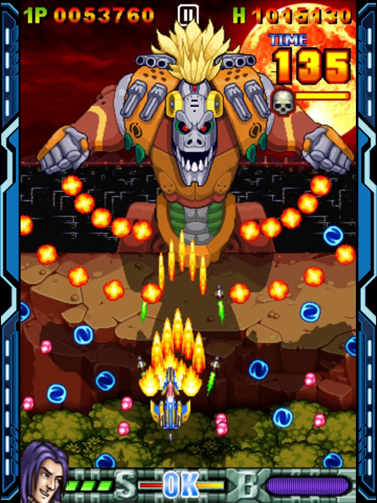 CAVE弾幕系に弾のスピードが彩京系な どこかで見た攻撃が多く懐かしさを感じるシューティングゲーム 音楽も懐かしさがあるけど良い感じだと思います。 残機+ライフ制で一撃くらってもしばらく耐えれば回復するので死ににくいですが パワーダウンするのでストレスはかなりたまります。 パワーダウンすると言っても最高までパワーアップしても爽快感は薄いです。 スタート直後から敵も固い&メリハリ無くダラダラと弾を撒き散らすので すぐに被弾してしまいパワーアップを維持するのが難しいのも気持ち良く無いです。 ボスの攻撃は前兆が解りにくいので理不尽さを感じます。 自機のパワーダウンが無い&もっと押し切れるほど強くなれば面白くなりそうだと思います。