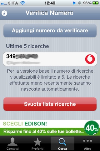 In più con la versione Pro si potrà conoscere in modo immediato tutti gli operatori dei numeri in rubrica e aggiungere il numero di un contatto più conveniente ad una lista di preferiti.