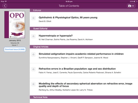 - Ophthalmic and Physiological Optics (6 issues) for mobile only edition