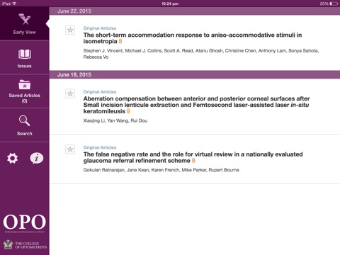 A leading ophthalmology journal is now available on your iPad. Fresh from the newsstand, “Ophthalmic and Physiological Optics” brings you a stimulating, high-impact mixture of Review Articles, Original Articles and more. Enjoy an entirely new browsing and reading experience, and keep up to date with the most important developments in ophthalmology and optometry even faster: