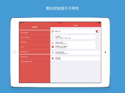 与Safari浏览器配合使用。只需在Safari设置菜单中设置Oppilo拦截程序即可。一切准备就绪。