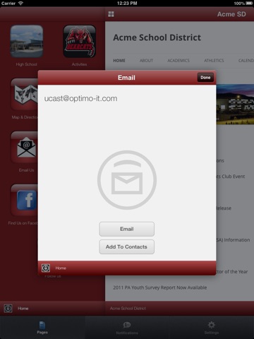 uCast is an application that can navigate an organizations website, place direct calls and emails, show important locations of the organization and give directions. uCast has a powerful communications capability that can push notifications right from the app to users involved with activities of the organization.