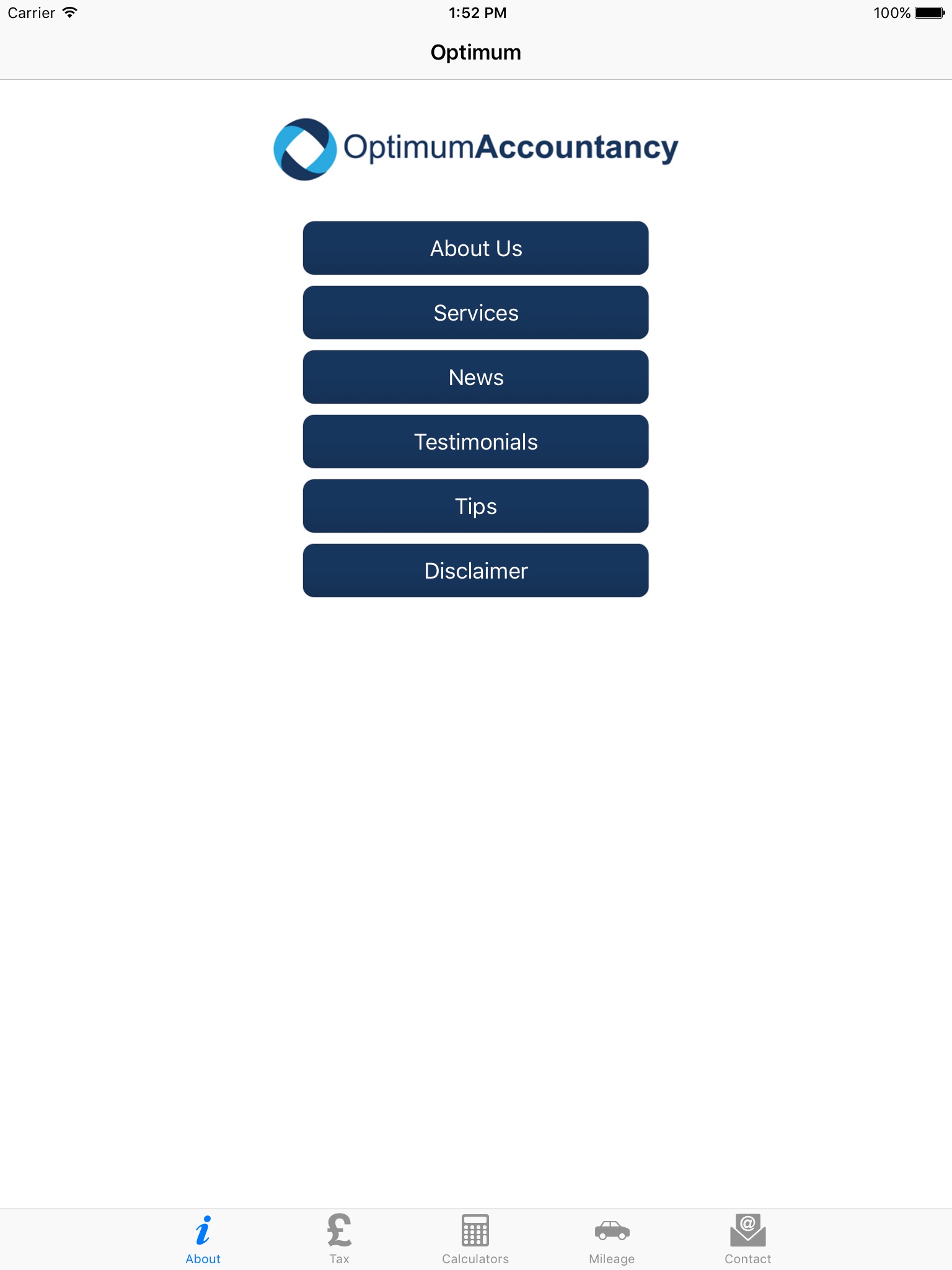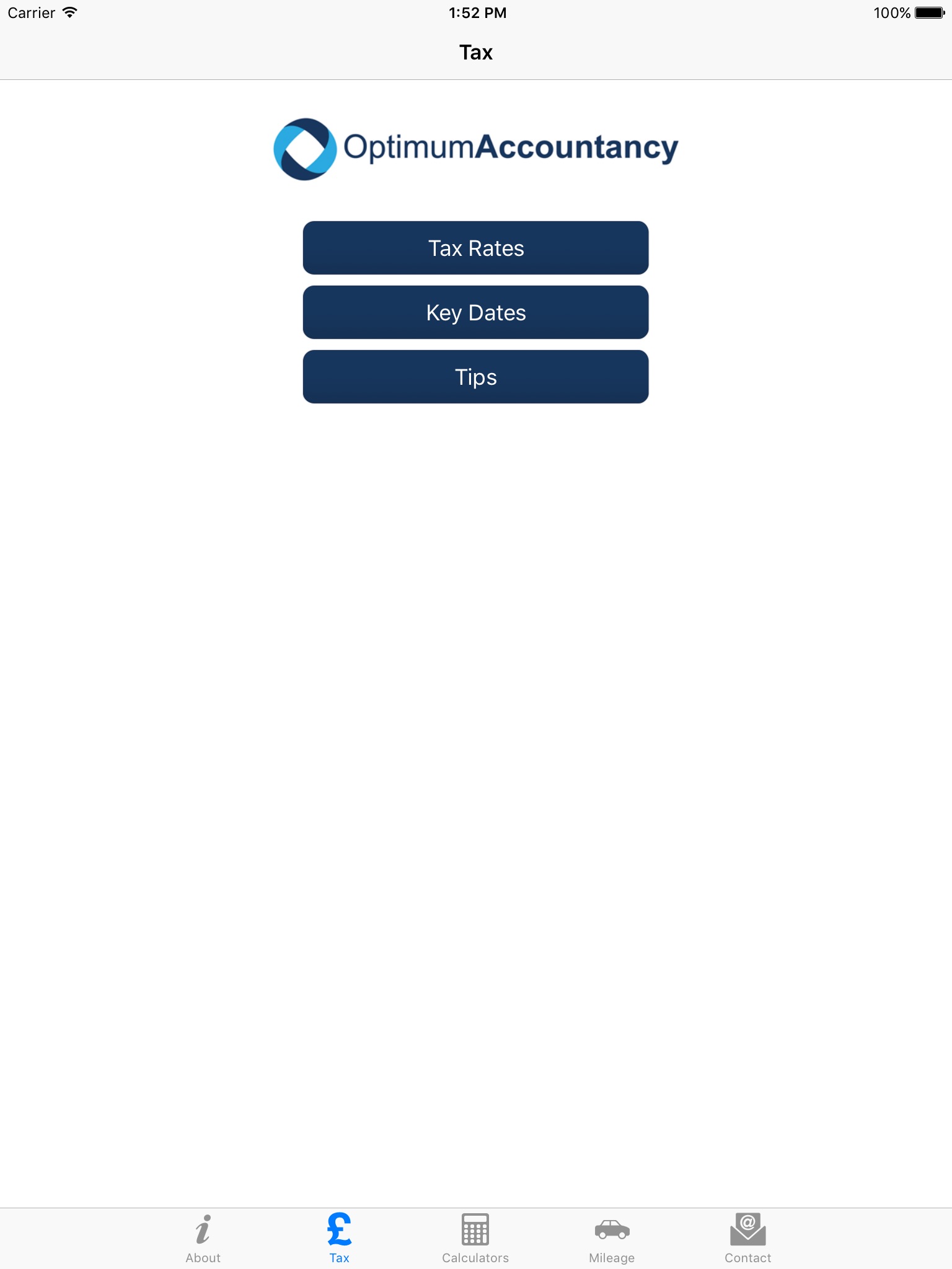This app is brought to you and your business compliments of Optimum Accountancy Ltd, and is developed by Tax Apps Limited.