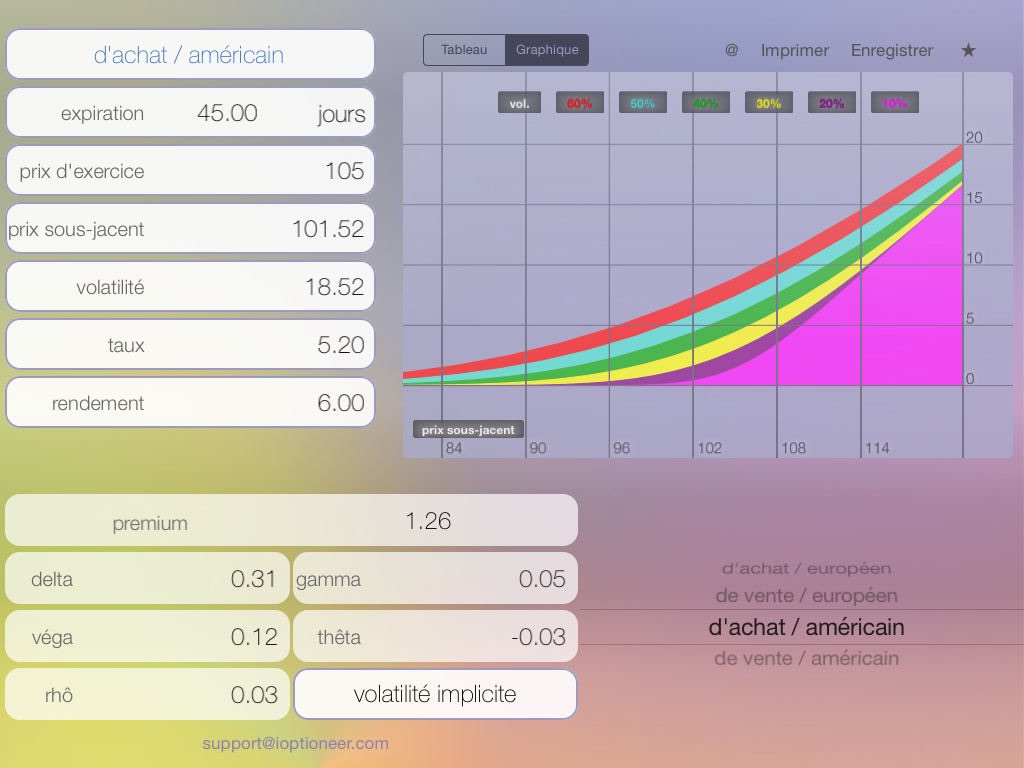 Option - is a new calculator for european and american options. The app has been specifically developed to efficiently price the options. It allows quick and easy calculation of the premium and risk parameters for various types of call and put options.