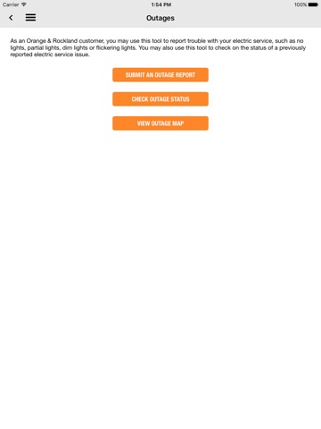 With the O&R Mobile app, you can easily pay and view your Orange & Rockland energy bills, enroll in eBill, and sign up for Budget Billing. You can also report and check on the status of a power problem, submit an outage-related damage photo, and use the interactive Outage Map. Stay connected with us by viewing our latest news releases and having quick access to our social media accounts, call center, and gas emergency hotline.