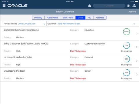 Note: Oracle HCM Cloud app requires an active Oracle Cloud Applications account, and features will vary based on licensed functionality. See the Application License Agreement for details.