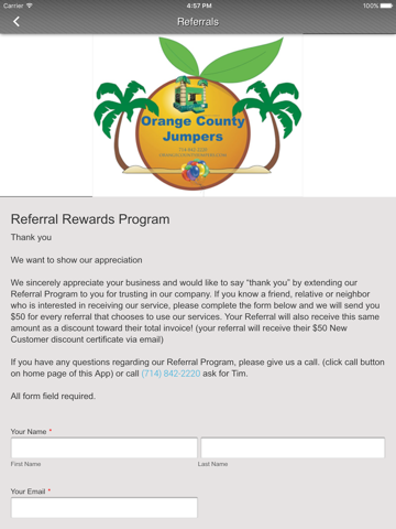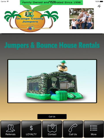 Welcome to the official app for Orange County Jumpers LLC, an easy-to-use, free mobile app designed to conveniently address all of your needs and requirements for Bounce House Rentals and Jumper rentals in Orange County, South Bay, Inland Empire and Camp Pendleton. We provide Standard Jumpers, Themed Panel Jumpers, Licensed Combos, Combo Jumpers, Slides, Water Slides, Interactives, Snow Cones, Cotton Candy, Balloon Twister, 70 Flat Screens and Tables, Chairs and More. Orange County Jumpers LLC is a superior quality company that proudly offers our products within the full Orange County, CA area, south Los Angeles County and north San Diego County. Functional features of the app provide you with easy access to such things as: