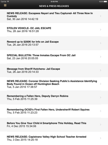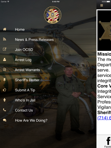 The Orange County Sheriffs Department (OCSD) mobile application gives you access to the latest OCSD news and press releases, crime alerts, arrest logs, inmate information and much more.