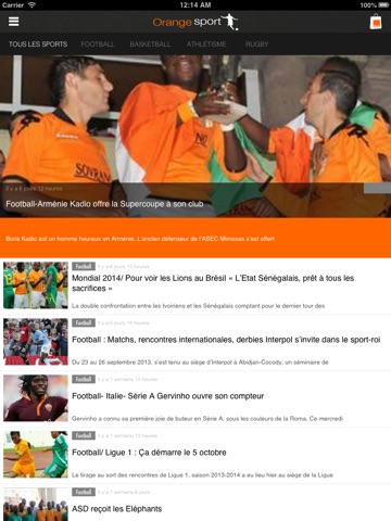 Téléchargez lAPP officielle d’actualités sportives d’Orange Côte d’Ivoire sur votre mobile et tablette, la première APP d’actualités sportives d’un opérateur GSM en Afrique! Désormais vivez en live tout le sport... Accédez au meilleur de l’information sportive en un simple clic via votre smartphone/tablette.