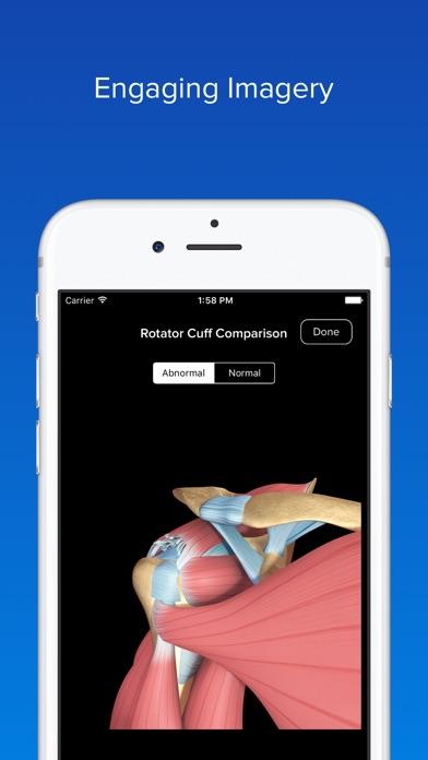 Users can subscribe individually to any anatomical category, or to any combination of them. There are discounted subscriptions for all Musculoskeletal content, as well as for all of the content available in the app. Each subscription option has the choice to renew monthly, or yearly at a discount. All subscriptions include access to Waiting Room mode.
