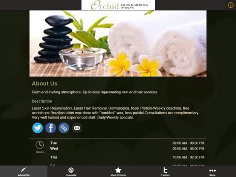 Calm and inviting atmosphere. Up to date rejuvenating skin and hair services.