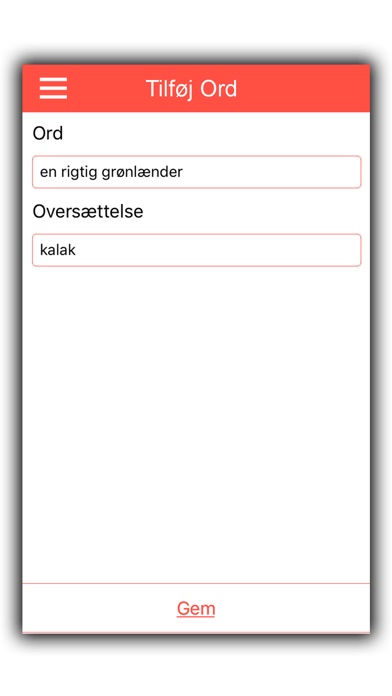 - Du kan selv tilføje ord og dens oversættelse.