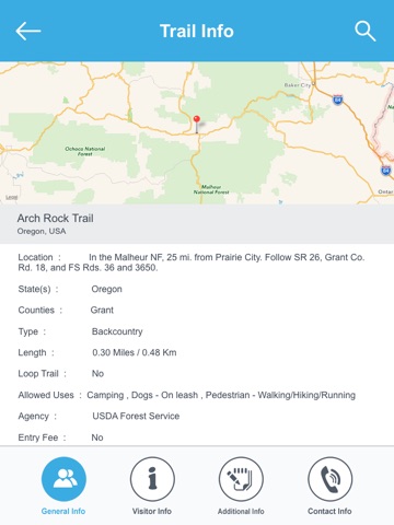 Name, Location, Length, Fees, Activities, Overview, General Info, Visitor Info, Additional Info, Contact Info