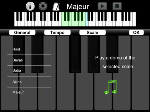 * The ability to chose different scales :"Majeur" "Saba" "Sikha" "Rast" "Bayati"