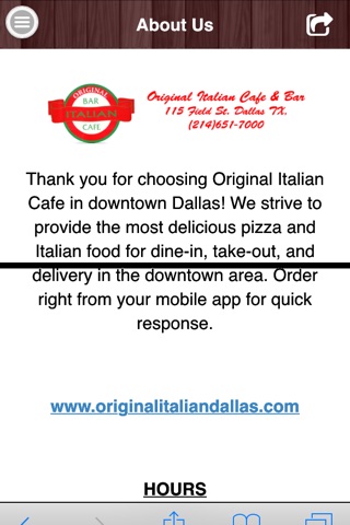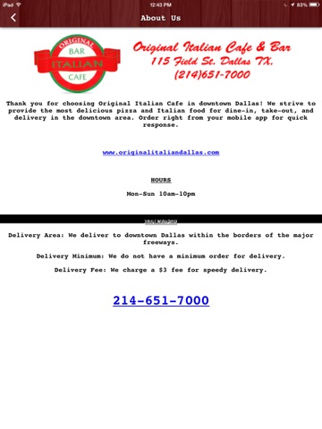 Original Italian Cafe offers the most delicious, authentic Italian pizza and entrees in downtown Dallas. Why not use our mobile app to stay connected with a super easy way to order your favorite pizza and Italian fare for pick-up or delivery!