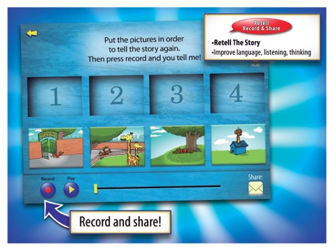 -Help your child record his or her own version of the story and share it with loved ones, teachers and friends…right from the app!